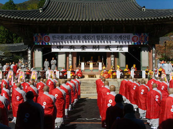 태고종(총무원장 인공 스님)이 10월 26일 태고총림 선암사 중앙금강계단에서 합동득도 제35기 수계산림을 봉행했다. 이날 사미 71명, 사미니 33명 총 104명이 수계를 받았다.